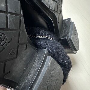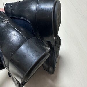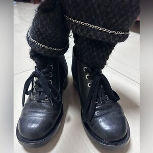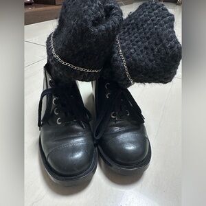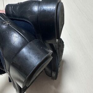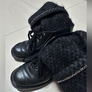 Auth Chanel Black Navy Blue Tweed Boots Socks Boots 39 Women
