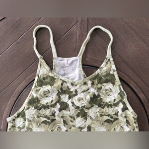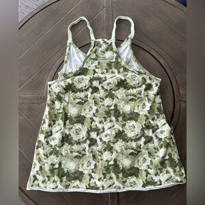 Features: Soft fabrication, lightweight design, scoop-neckline, thin shoulder straps, racerback detail with zippered pocket, oversized patch pockets at front, lined interior with shorts piecing at bottom
