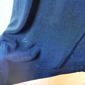 Chico’s Travelers collection long sleeve tunic in deep navy blue. Soft stretch acetate-blend knit with a subtle sheen. V-neckline and easy relaxed fit.