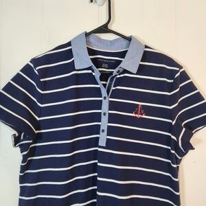 Tommy Hilfiger Blue Striped Layered Polo Size XL Anchor