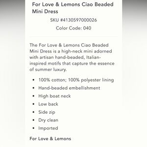 Anthropologie NWT For Love & Lemons Ciao Beaded Mini Dress size 4. Absolutely stunning, breathtakingly gorgeous, unique, amazing quality dress.