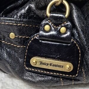 Juicy Couture Black Leather Satchel Bag Crown Lock Y2K Shoulder Bag Cowhide