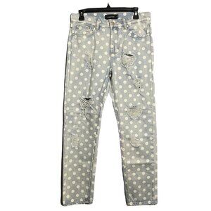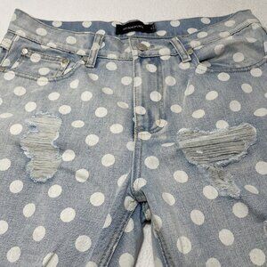 Minkpink Magnolia Boyfriend Jeans Women Size XS White Dot Hipster Rip Torn Hole