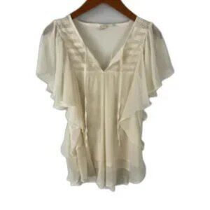 Mudd Short Sleeve Cream Beige Lace Blouse Size Medium.