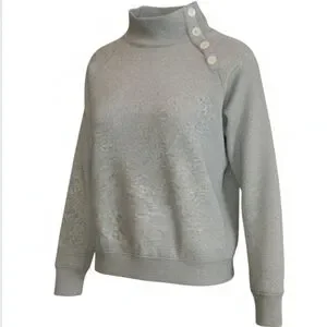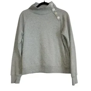 J. Crew Factory Light Gray Button Detail Mock Neck Sweatshirt Size S Super Soft