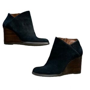 Lucky Brand Yakeena black suede wedge ankle boots size 8.5