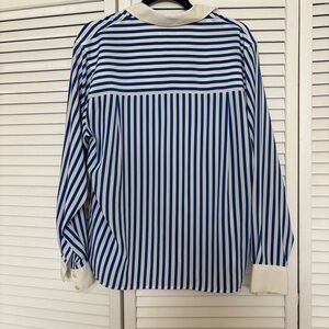Elegant button-down with bold blue and white stripes. Classic collar design. Ideal for a polished look.