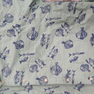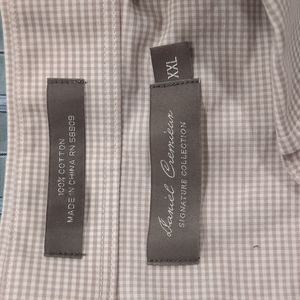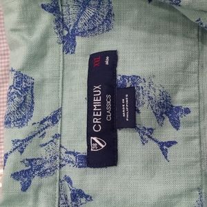 Men's size XXL short sleeve shirt bundle. One no iron VanHeusen striped shirt, one Daniel Cremiux grey and white small plaid check shirt, one tropical fish vacation print from Cremiux classics. Excellent condition.