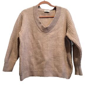 Aritzia Babaton Chunky Knit Merino Wool Sweater Ribbed Neutral Cozy Size Medium