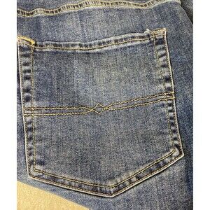 The product is a lot of 2 Lucky Brand Men's 412 Athletic Slim Stretch Jeans in size 38x30. These jeans feature a zip and button closure, a mid-rise fit, slim leg style, and are machine washable. They are made from denim fabric in shades of blue, with a regular size type and are designed for men. The jeans also have the brand's signature stretch feature, providing a comfortable and versatile option for everyday wear.