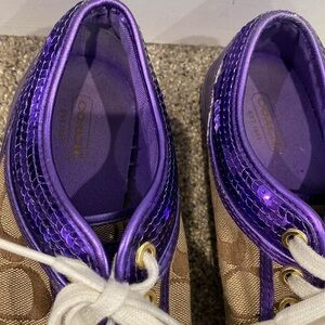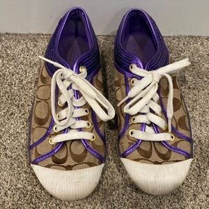 Coach Purple, Brown, and White Sneaker Tennis Shoes - Size 8 EUC
