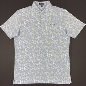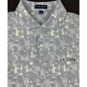 Peter Millar Mens Polo Shirt Cascata Golf Club Size Large Crown Crafted Wine Cocktails Print Novelty Graphic All Over Print