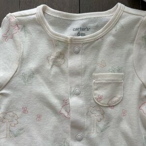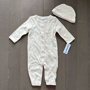 Carter's convertible one piece with bunny print all over. Includes a cozy matching bonnet.