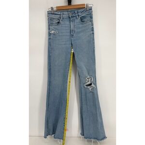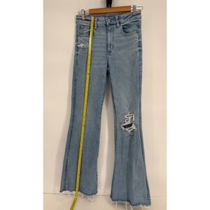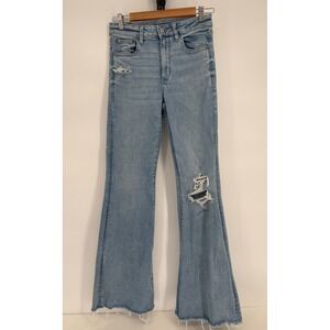 American Eagle Next Level Stretch High Rise Flare Jeans Light Wash Distressed 6