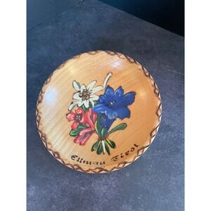 Vintage Ellmau Tirol Hand Painted Wood Bowl Alpine Flowers Edelweiss Austria