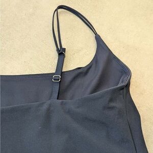 Sporty and flattering Abercrombie & Fitch tennis dress in a classic navy color. Features adjustable spaghetti straps and built-in shorts with a hidden side pocket, perfect for tennis, pickleball, workouts, or casual athleisure wear.