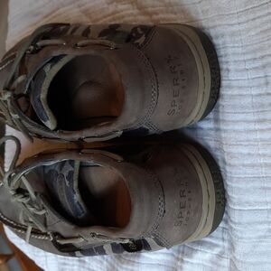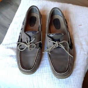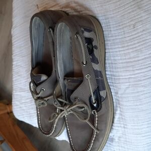 Womens grey leopard print accent Sperry Loafer size 10 leather