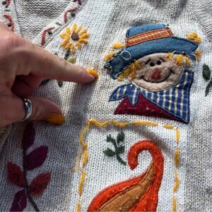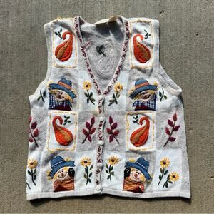 Vintage Fall Scarecrow Squash Pumpkin Knit Sweater Vest Patchwork Sampler