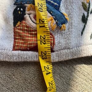 Vintage Fall Scarecrow Squash Pumpkin Knit Sweater Vest Patchwork Sampler LARGE