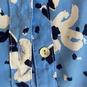 Beautiful floral design. Great for day or night. Silky like feel. Polyester. Like new. Runs a bit big.
