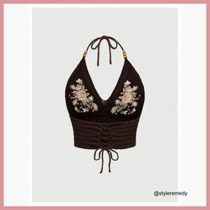 ✨ Boho Gothic Western Halter Top