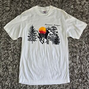 Vintage Selec-T Tee Jays Menominee Michigan Deer Sunset Graphic T-Shirt White L