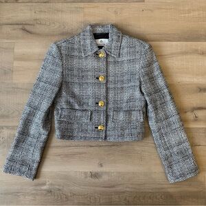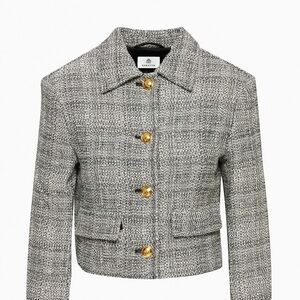 Aritzia Babaton black & white cotton linen tweed blazer jacket - 2XS