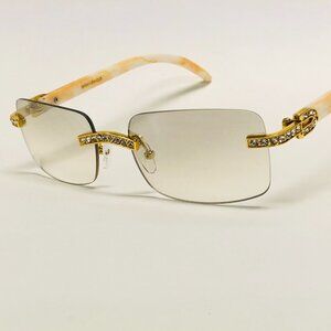 Men Clear Sunglasses Square Gold Classic Shades Hip Hop Iced Out Diamond Lentes