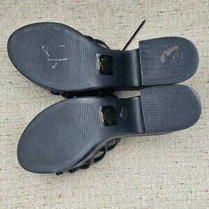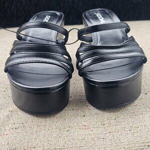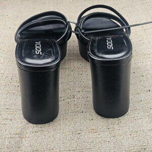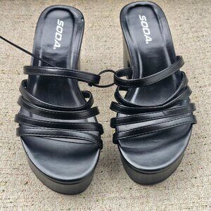 SODA Women Strappy Wedge Heel Sandal Black Vegan Faux Leather Shoes Size 6M