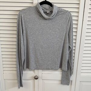 ULTRALITE Go-Dry grey cropped tee with thumb holes. Light gray knit fabric. Ribbed neckline detail. Lightweight and breathable casual top, extremely soft and comfortable.