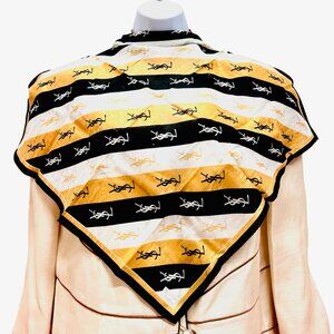 New Tag On Yves Saint Laurent Cotton & Silk 21.5"Gold White Black stripe (64