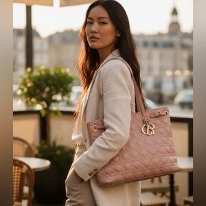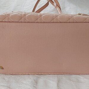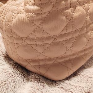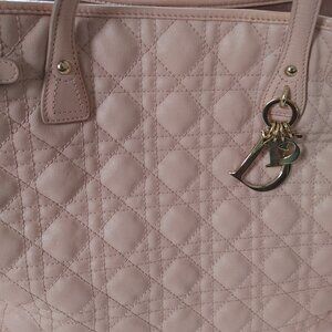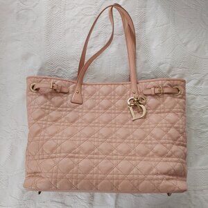 Elegant Dior tote with quilted design. Features iconic Dior charm. Perfect for everyday use. In good condition. Beautiful for spring. Coated canvas. A couple of flaws. Please see photos. 💯 authentic. See certificate. Clean bag in great shape. Perfect for work or travel. Champagne hardware. Do not miss.