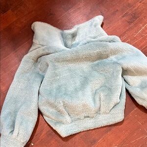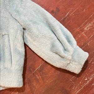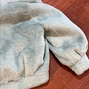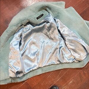 Chic faux fur coat in a soft light aqua shade. Ideal for a stylish look.