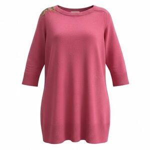 Soft crewneck sweater in a vibrant pink. Lightweight knit with ribbed trim for a polished look. Comfortable, versatile layering piece that pairs well with denim or skirts. Easy-care fabric for everyday wear.