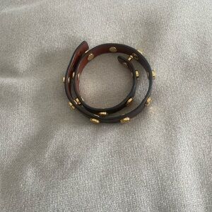 Tory Burch Miller Double Wrap Leather Bracelet – Brown & Gold