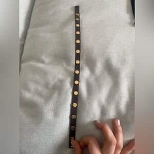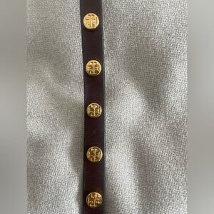 Description: Upgrade your wrist game with this iconic Tory Burch Miller double-wrap bracelet. It features smooth, high-quality leather in a versatile dark brown, adorned with polished 18k gold-plated brass "Double T" logo studs. It wraps twice around the wrist for an effortless layered look that works with everything from a casual white tee to a blazer.