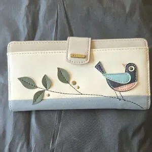 Relic Cream and Light Blue Bird Applique Clutch Wallet