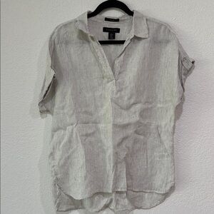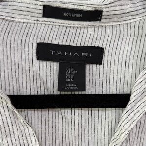 Tahari 100% Linen Striped Boho Chic Short Sleeve Shirt