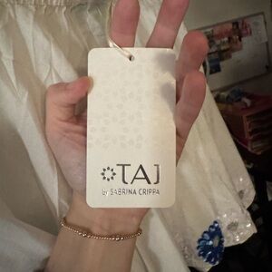 TAJ by Sabrina Crippa White Skirt with Blue Floral Embroidery