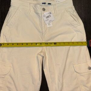 Wide leg cargo pants from American Eagle Outfitters. Clean cream color with side cargo pockets. Button and zip front closure. Breathable casual fabric. Easy to style for everyday wear.