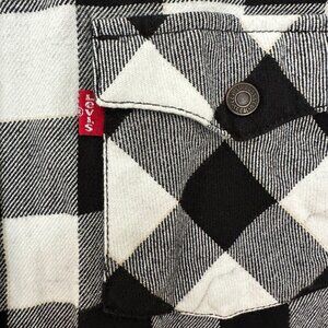 LEVIS WOMEN'S BLACK WHITE PLAID NFL ORLEANS SAINTS SNAP BUTTON UP SHIRT SIZE XL