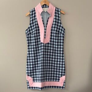 Sail To Sable Gingham Sleeveless Tunic Dress Medium Blue Navy Pink