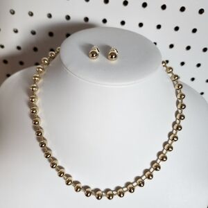 Classic Gold Bead Necklace and Earring Set