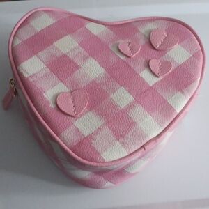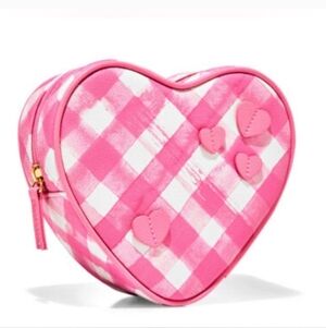 NWT Bath & Body Works Pink Gingham Heart Cosmetic Bag Zip Pouch 6.5”
