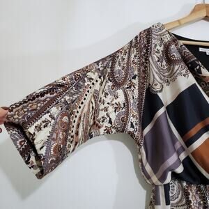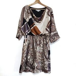 Maggy London | Drapey Mixed Pattern 3/4 Sleeve Silky Dress with Pockets