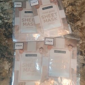 Freeman rose gold sheet masks. each package has four sheets of masks individually packaged perfect for gift-giving basket fillers facials makeup artist or your own personal collection. You are getting all 16 in this bundle all of them are brand new sealed