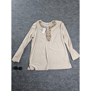Susan Graver Embellished Tunic Top – Beige Long Sleeve Women’s SZ M