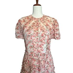 Mac Duggal High Neck Floral Mesh Ruffle Maxi Dress – Pink/Cream – Size 8