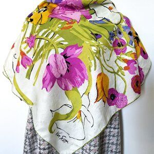 Ken Scott Scarf Women's White Flower Hand-stitched 33"