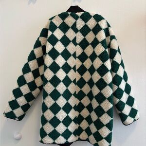 If By Sea Green and Cream Checkered Teddy Jacket
